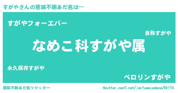 | 男性向けラノベタイトル風あだ名 | 『転生したらすがやだった件』 |