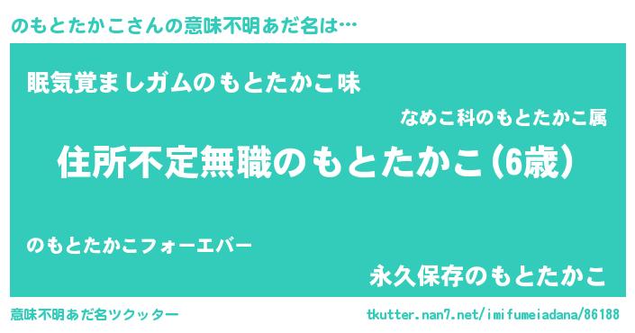| 男性向けラノベタイトル風あだ名 | 『この素晴らしい世界にのもとたかこを!』 |