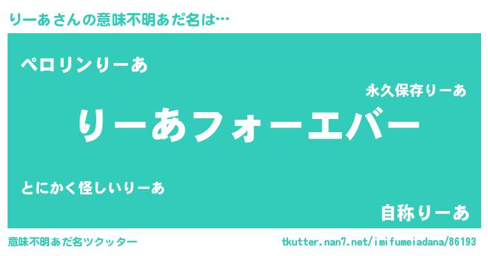 | 肩書あだ名 | 『りーあ国家主席』『りーあマネージャー』 |