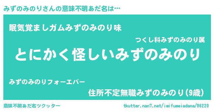 | ポケモン風あだ名 | 『ヒミズノミノリ』『ミックウザ』 |