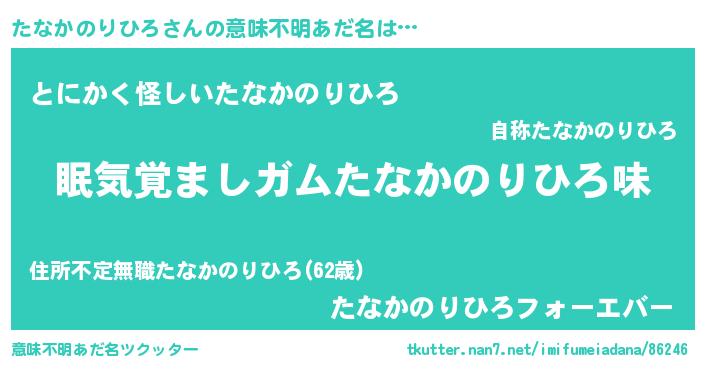 | 男性向けラノベタイトル風あだ名 | 『ノーゲーム・ノータナカノリヒロ』 |