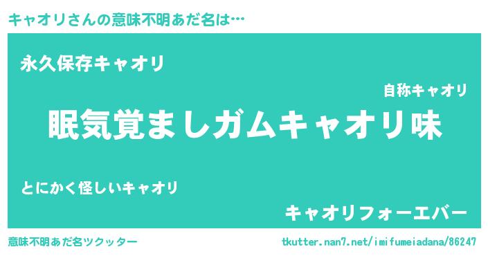 | ヘコむあだ名 | 『キャオリ(小並感)』『豆乳』 |
