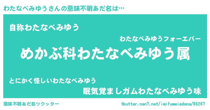 | 胡散臭い通販商品みたいなあだ名 | 『ガンによく効く高麗人参…その名も「わたなべみゆう」』 |