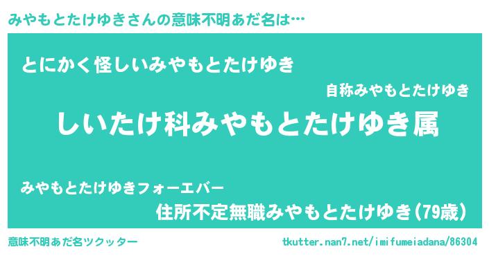 | 男性向けラノベタイトル風あだ名 | 『ミヤモトタケユキスレイヤー』 |
