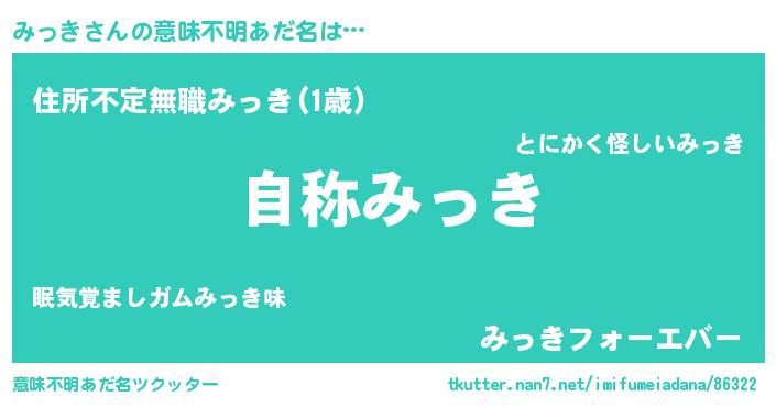 | ヒーロー風カッコイイあだ名 | 『超時空戦士ミッキ』『仮面ミッダー』 |