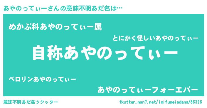 | 肩書あだ名 | 『あやのってぃー閣下』 |