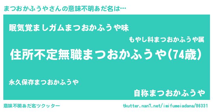 | 男性向けラノベタイトル風あだ名 | 『この素晴らしい世界にまつおかふうやを!』 |