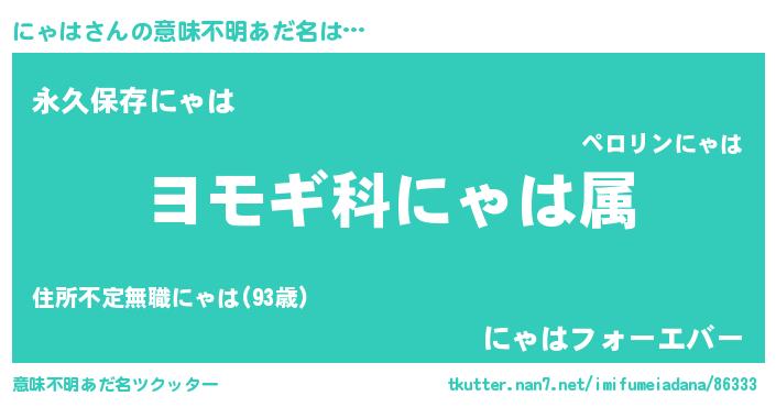 | 欧米人風あだ名 | 『アンジェラ・にゃは』『マイケルにゃは』 |