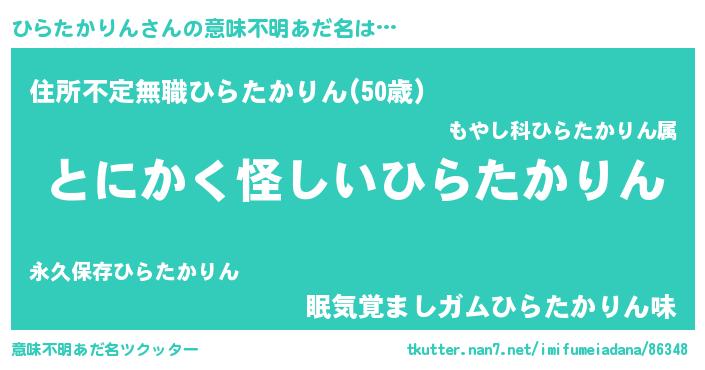 | ヘコむあだ名 | 『ひらを』『ひらたかりん(笑)』 |