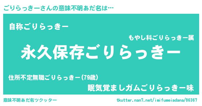 | 伝説のあだ名 | 『古より伝わる暗殺者ごりらっきー』 |