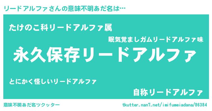 | 胡散臭い通販商品みたいなあだ名 | 『絶対に幸福をもたらす健康食品…その名も「リードアルファ」』 |