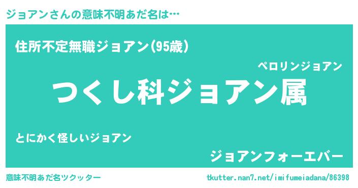 | 女子向けラノベタイトル風あだ名 | 『ジョアンの玉の輿計画!』 |