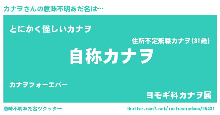| 女子向けラノベタイトル風あだ名 | 『闇のカナヲ』『カナヲの卵を拾いまして』 |