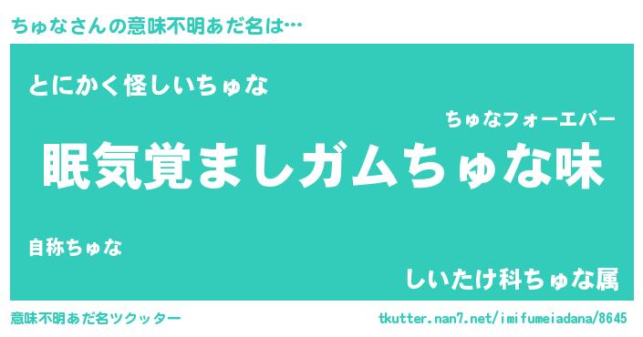 | 女子向けラノベタイトル風あだ名 | 『死神ちゅなの再婚』『ちゅな様がみてる』 |