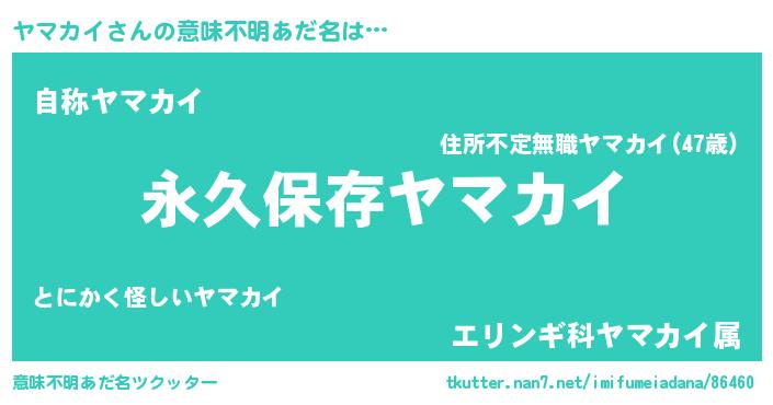 | 男性向けラノベタイトル風あだ名 | 『ヤマカイという概念が存在しない退屈な世界 』 |