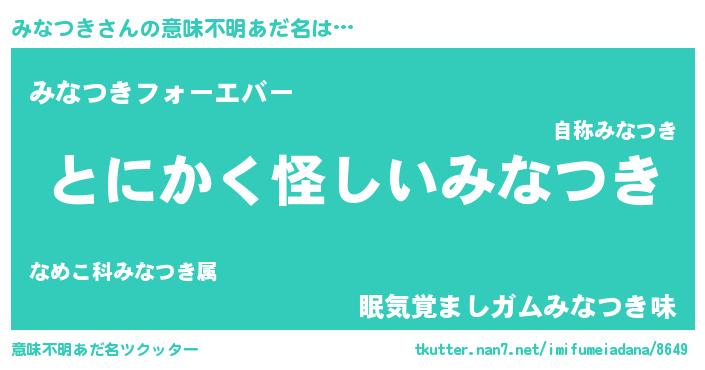 | ヒーロー風カッコイイあだ名 | 『幻影騎士ミナ』『ウルトラみなつきマン』 |