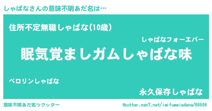 | ヒーロー風カッコイイあだ名 | 『天空の使者しゃばな』『仮面シャダー』 |