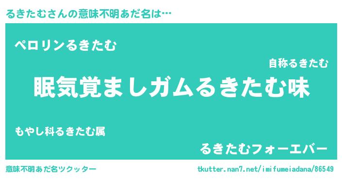 | 欧米人風あだ名 | 『アンジェラ・るきたむ』 |