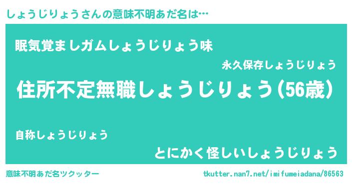 | 男性向けラノベタイトル風あだ名 | 『この素晴らしい世界にしょうじりょうを!』 |