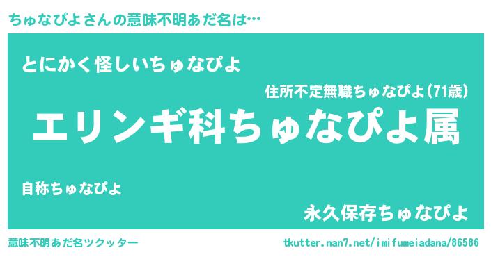 | 男性向けラノベタイトル風あだ名 | 『チュナピヨスレイヤー』 |