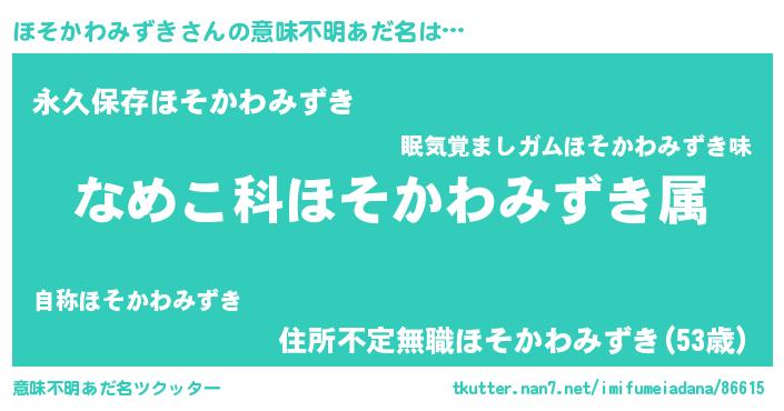 | ヘコむあだ名 | 『ほそかわみずき(小並感)』『ほそお』 |