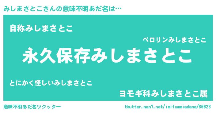 | 胡散臭い通販商品みたいなあだ名 | 『来世でも幸せになれる健康食品…その名も「みしまさとこ」』 |