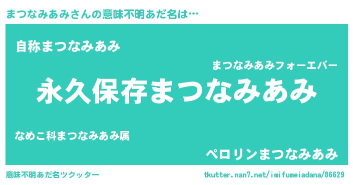 | 胡散臭い通販商品みたいなあだ名 | 『来世でも幸せになれる水素水…その名も「まつなみあみ」』 |