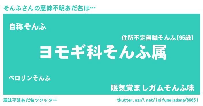 | 胡散臭い通販商品みたいなあだ名 | 『芸能人もオススメするアガリクス…その名も「そんふ」』 |