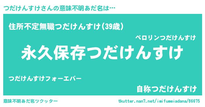 | 女子向けラノベタイトル風あだ名 | 『異世界で失敗しない100のつだけんすけ』 |