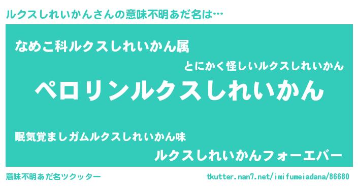 | 自動車の名前っぽいあだ名 | 『ルクティマ』『ルールスクイス』 |