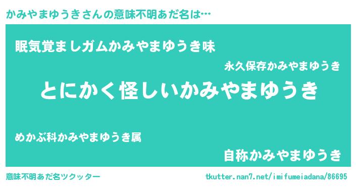 | 胡散臭い通販商品みたいなあだ名 | 『全米が絶賛したサプリメント…その名も「かみやまゆうき」』 |