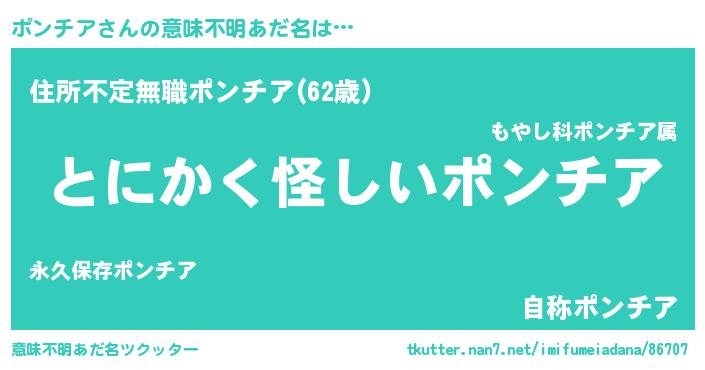 | 胡散臭い通販商品みたいなあだ名 | 『信頼と実績のサプリメント…その名も「ポンチア」』 |