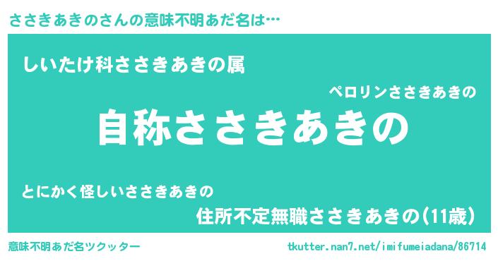 | 女子向けラノベタイトル風あだ名 | 『ささきあきのなんてお断りですっ。』 |