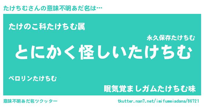 | ヘコむあだ名 | 『たけっちょ』『たけちむ(小並感)』 |