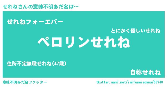 | ヘコむあだ名 | 『せれもー』『つくし』『せれ太郎』 |