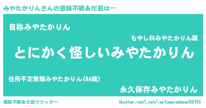 | 女子向けラノベタイトル風あだ名 | 『みやたかりんは平凡を望む』 |