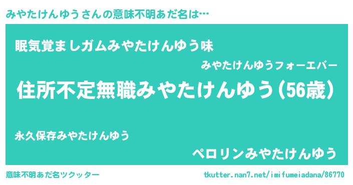 | ヒーロー風カッコイイあだ名 | 『仮面ミヤダー』『ネオミヤタケンユウ』 |