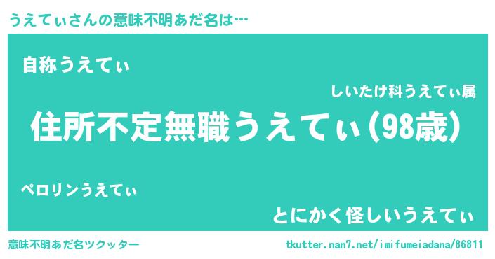 | 男性向けラノベタイトル風あだ名 | 『魔弾の王とうえてぃ』 |