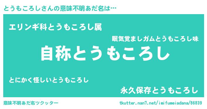 | 胡散臭い通販商品みたいなあだ名 | 『芸能人もオススメする高麗人参…その名も「とうもころし」』 |