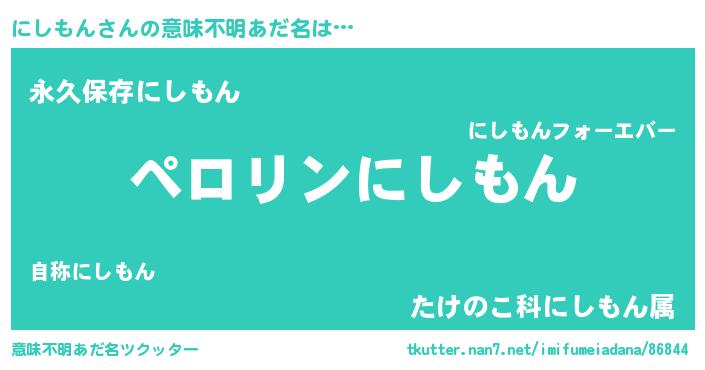 | 男性向けラノベタイトル風あだ名 | 『にしもんの憂鬱』 |