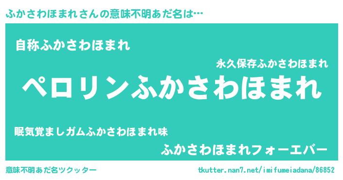 | 恥ずかしいあだ名 | 『プリティーふかさわほまれ』『ふかちん』 |