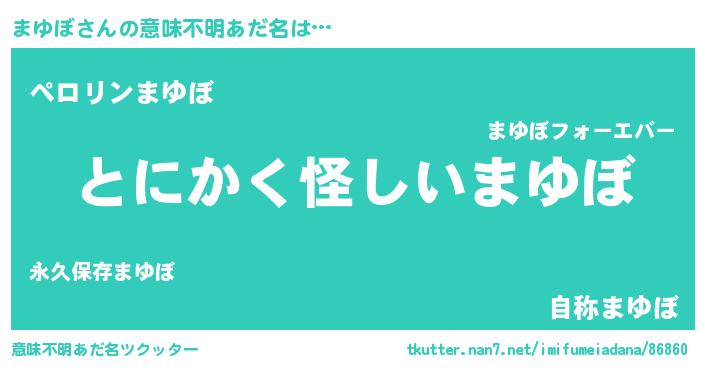 | 女子向けラノベタイトル風あだ名 | 『まゆぼの卵を拾いまして』『闇のまゆぼ』 |