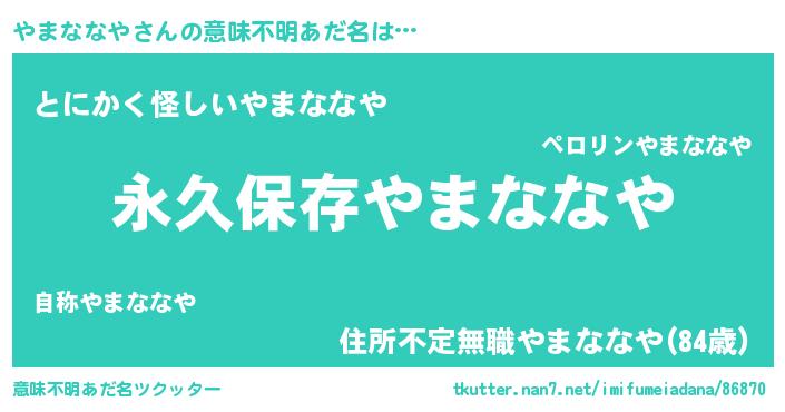 | 胡散臭い通販商品みたいなあだ名 | 『来世でも幸せになれる健康食品…その名も「やまななや」』 |