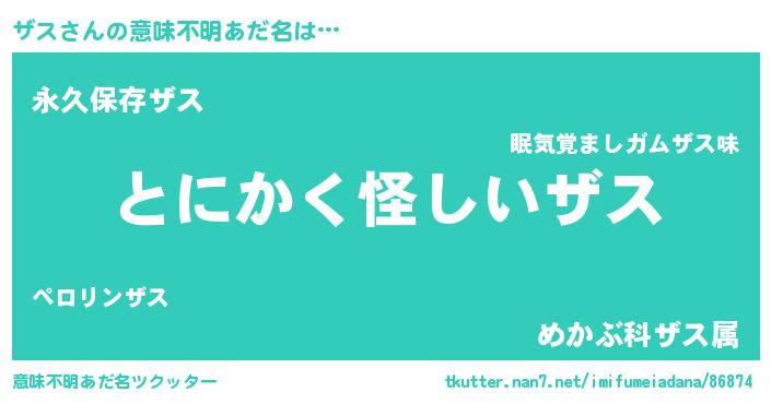 | 女子向けラノベタイトル風あだ名 | 『ザスの卵を拾いまして』『ザス恋絵巻』 |