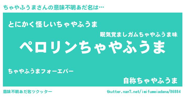 | 欧米人風あだ名 | 『ちゃやふうま・ステッグマイヤー』 |
