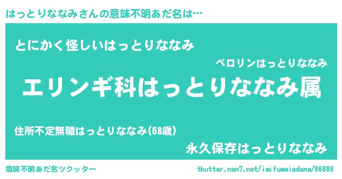 | ポケモン風あだ名 | 『ハッキング』『ヒハットリナナミ』 |