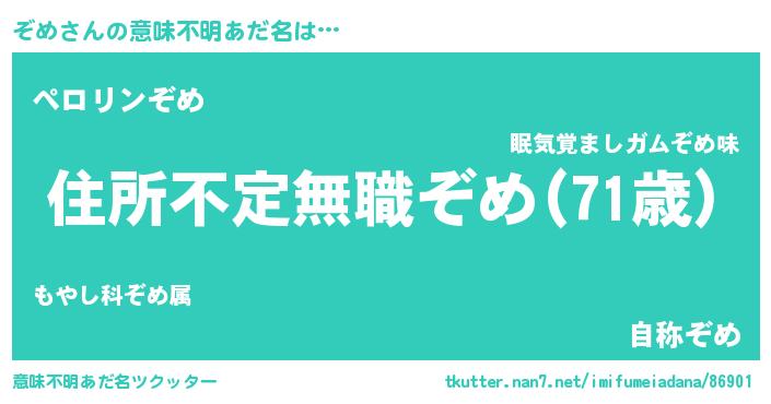 | 男性向けラノベタイトル風あだ名 | 『ぞめに滅ぼされるだけの簡単なお仕事です』 |