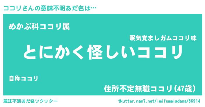 | ヘコむあだ名 | 『ココっ子』『ココもー』『豆乳』 |