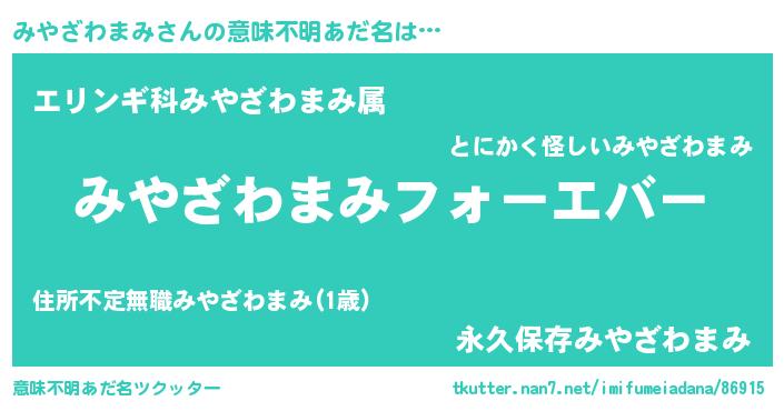| 欧米人風あだ名 | 『みやざわまみクリステル』 |