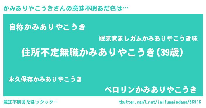 | 胡散臭い通販商品みたいなあだ名 | 『あなたにだけ特別に提供する限定10本のレアな日本酒…その名も「かみありやこうき」』 |